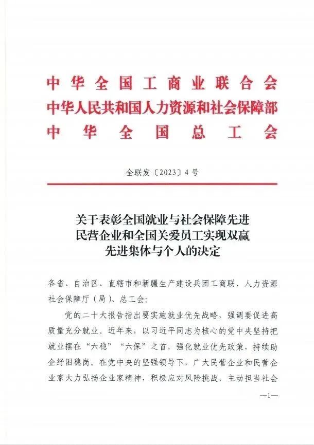 近日,中华全国工商业联合会、中华人民共和国人力资源和社会保障部、中华全国总工会发布《关于表彰全国就业与社会保障先进民营企业和全国关爱员工实现双赢先进集体与个人的决定》,威廉希尔足球官网党委书记、董事长王新城荣获湖北省唯一“全国关爱员工优秀民营企业家”称号,威廉希尔足球官网员工张作顿荣获湖北省唯一“全国热爱企业优秀员工”称...