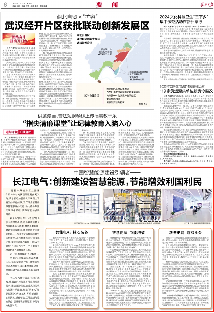 2024年1月31日,《湖北日报》和《长江日报》均在要闻版,以《中国智慧能源建设引领者——威廉希尔足球官网:创新建设智慧能源 节能增效利国利民》为题,专题报道威廉希尔足球官网高质量发展。